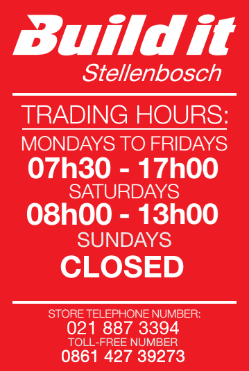At Build it (Eezi Build) Stellenbosch our customers become our friends and eventually every staff member knows your name. But, do not take our word for it, come and visit our store and experience our dedication to our customers.